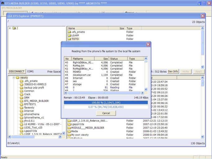 6) Teď máte přistup na všechny files v TOTO a kopírujete je do vašeho počítače(Right click and Read)